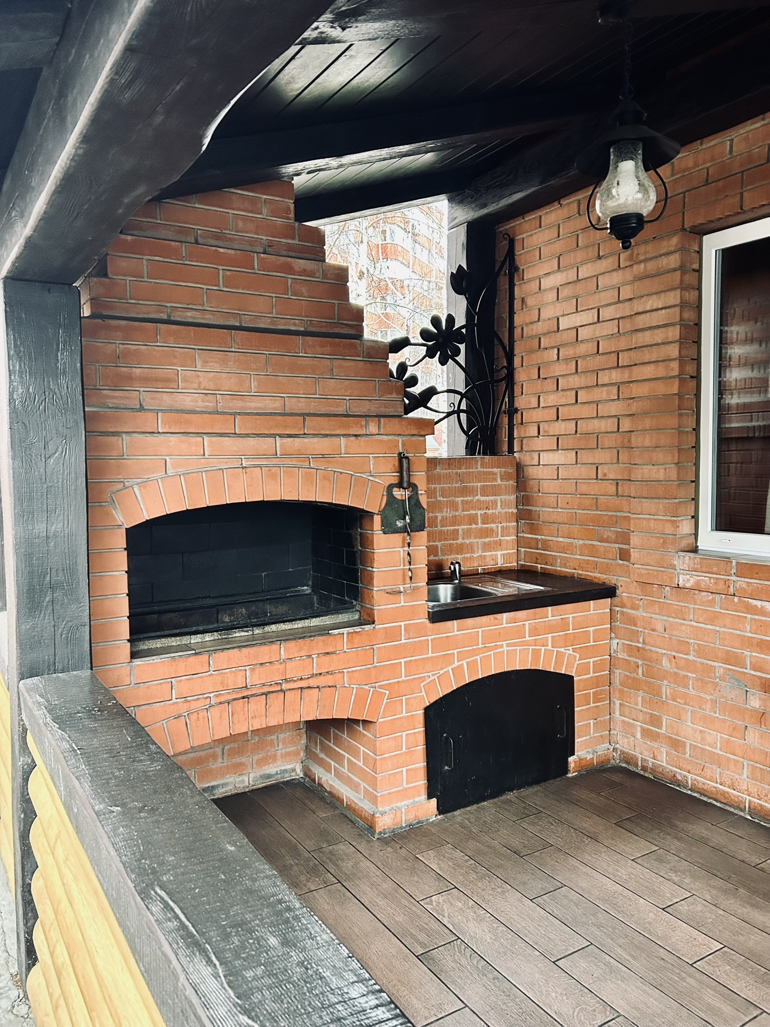 Да, в деревенской бане есть выход на улицу, где можно насладиться свежим воздухом. Это особенно удобно в холодное время года, когда вы можете перемещаться между баней и открытым пространством
