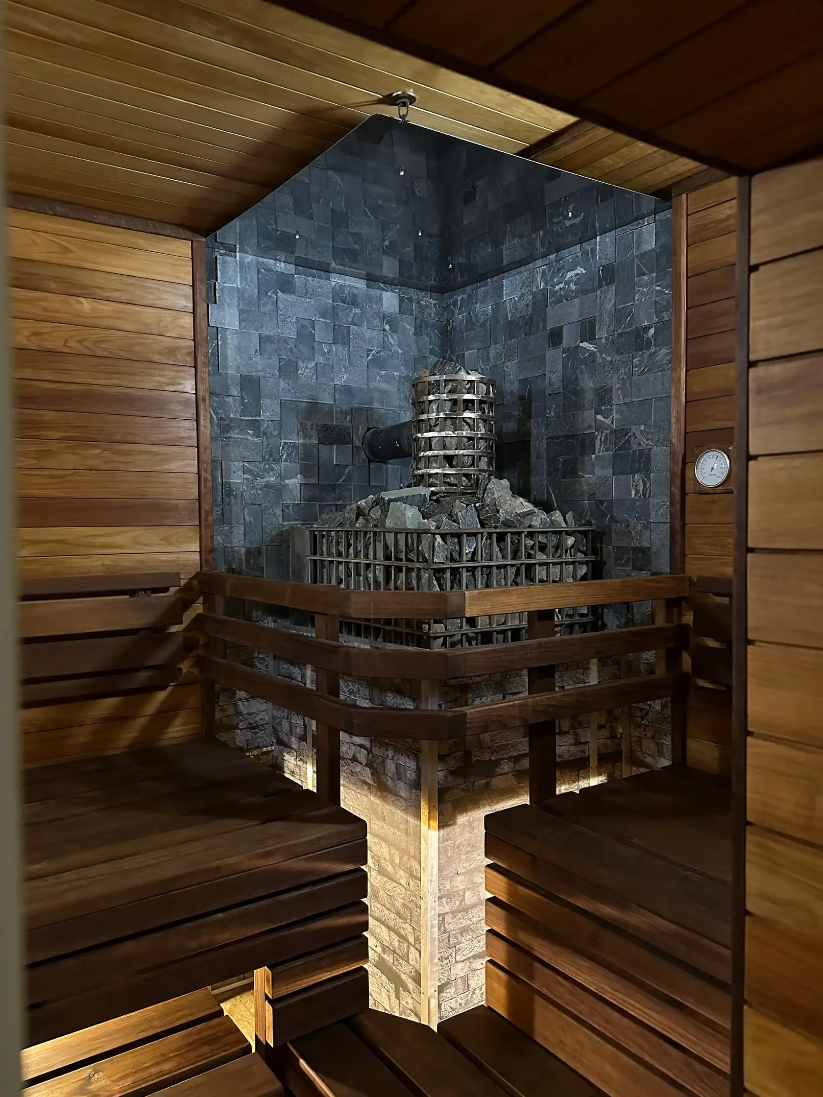 Парная сауны, в отличие от русской бани — очень жаркая. Рекомендуем париться в несколько заходов, без использования веников