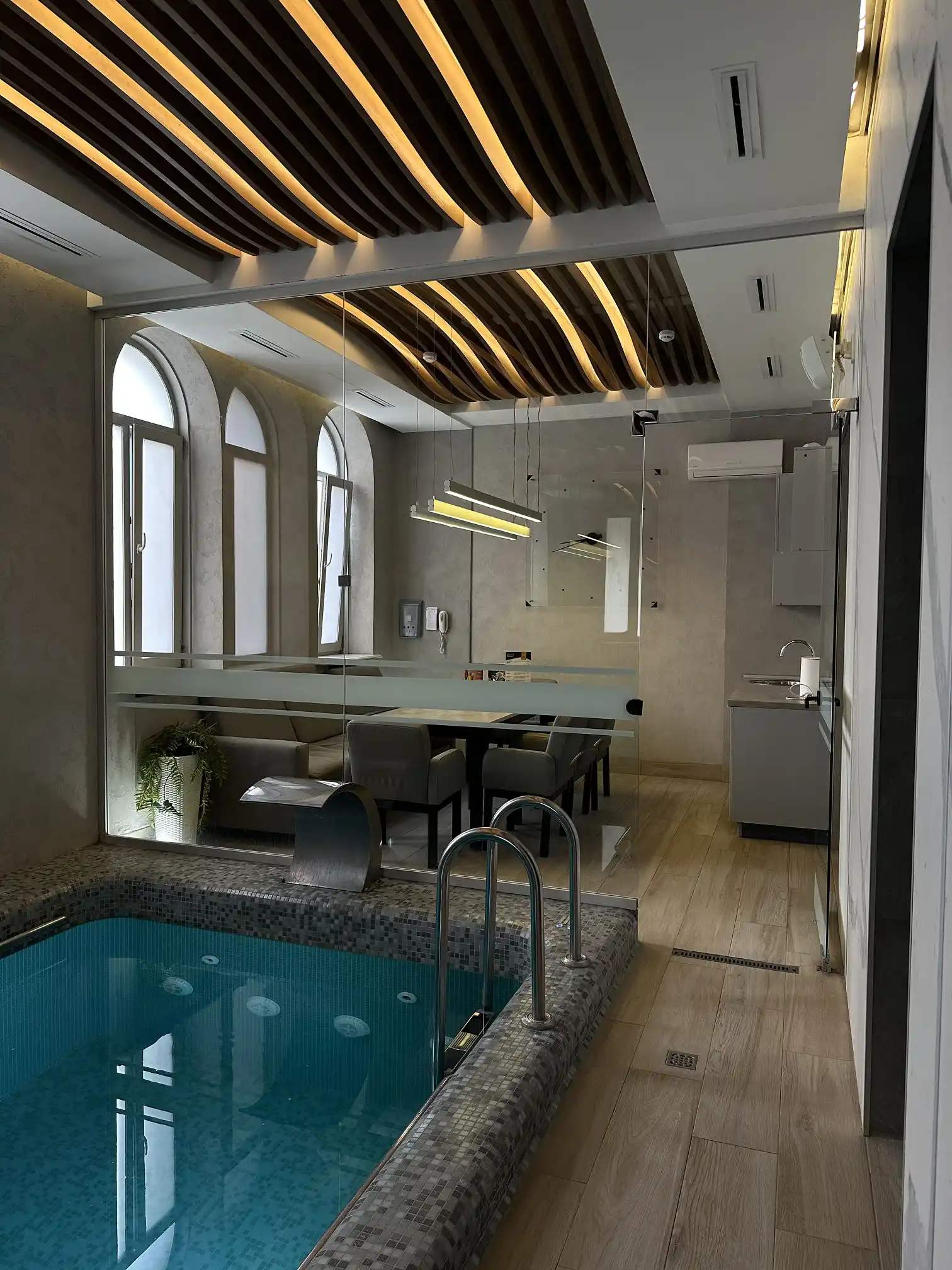 Пространство с силой и характером, где каждый вдох наполняет энергией. Парная, бассейн с морской солью, аэромассаж и водопад создают уникальную атмосферу. Соляная комната и отдельная зона для отдыха позволяют полностью погрузиться в ощущение обновления и гармонии