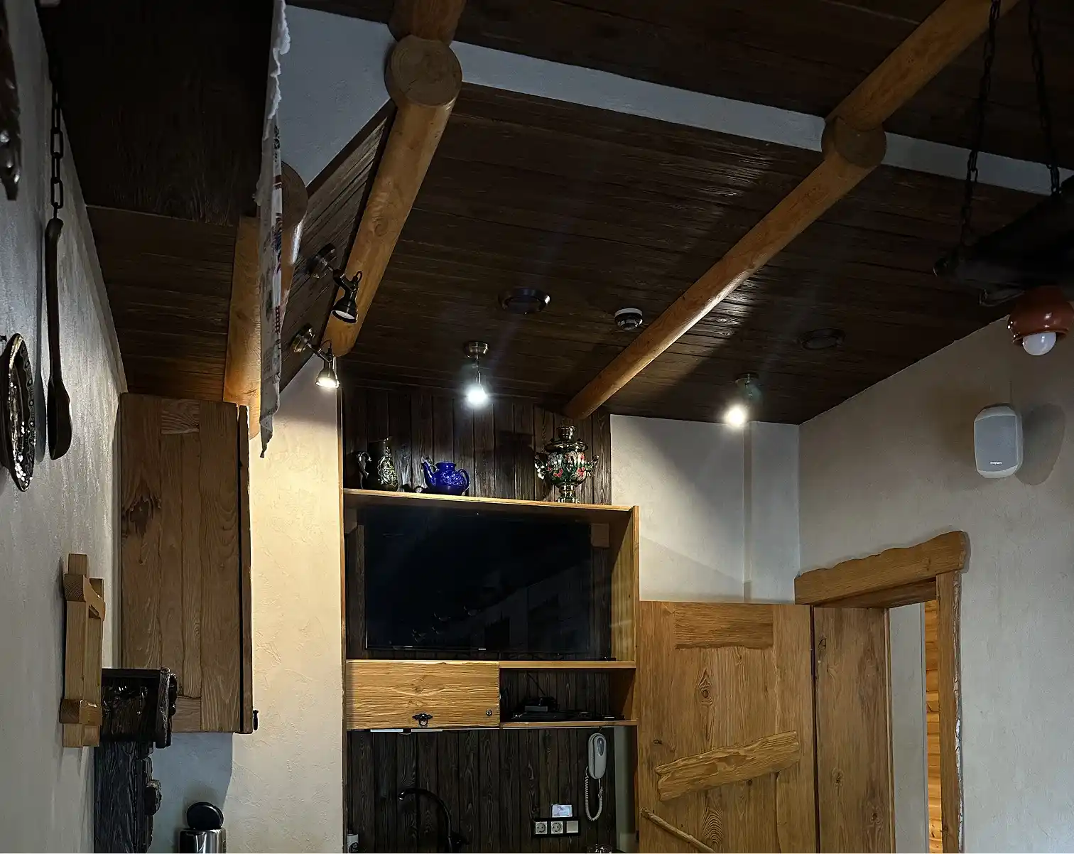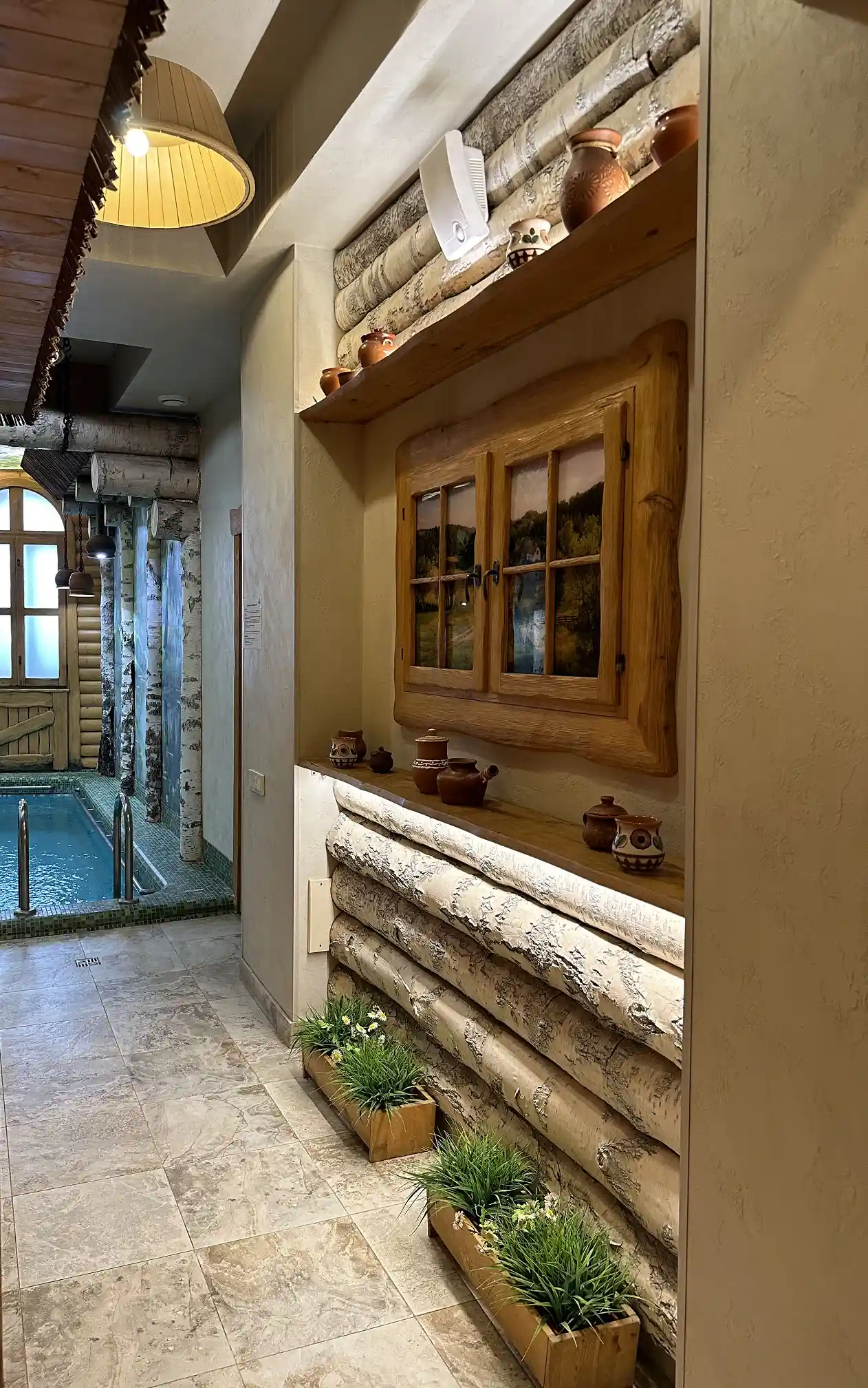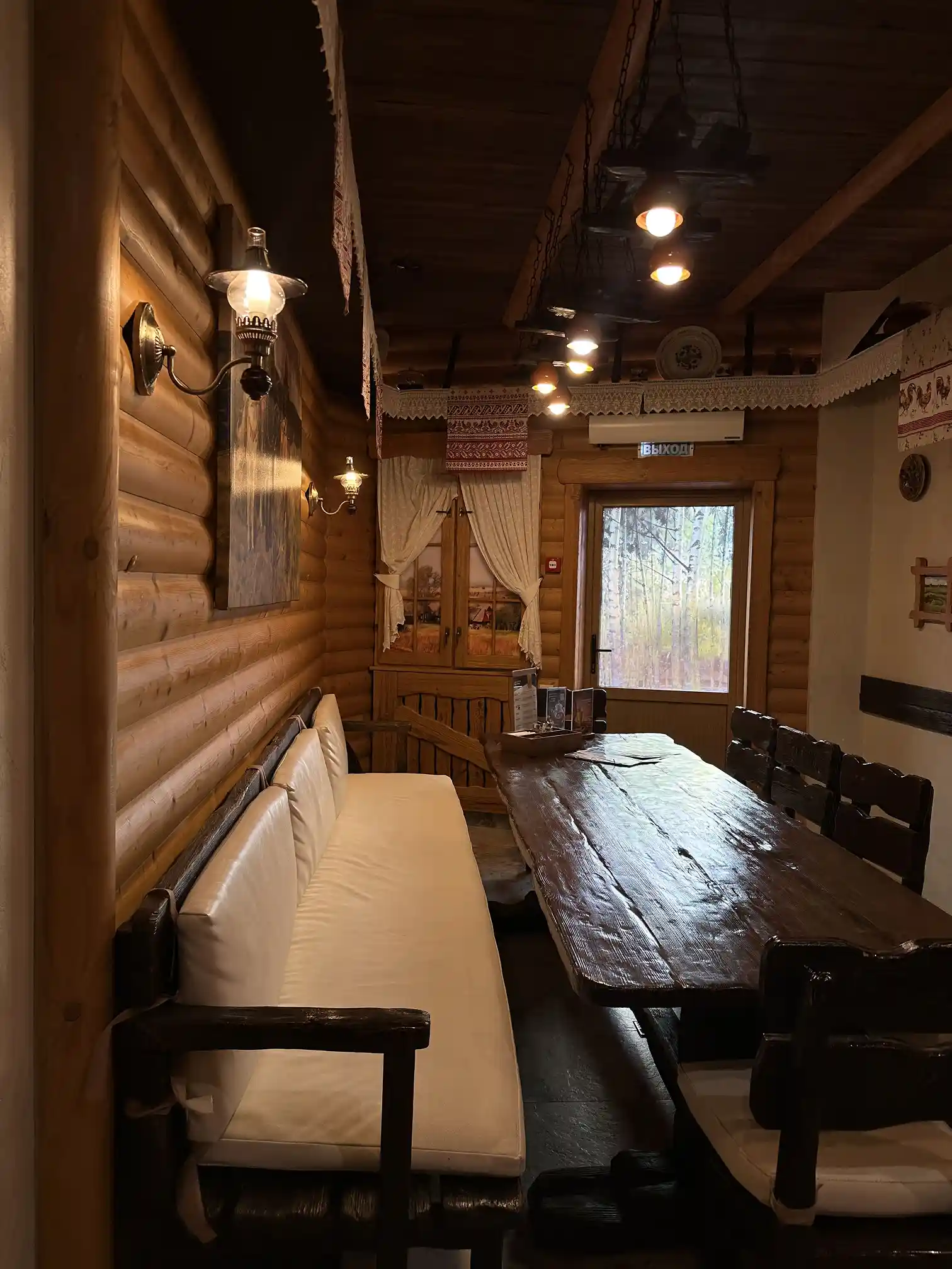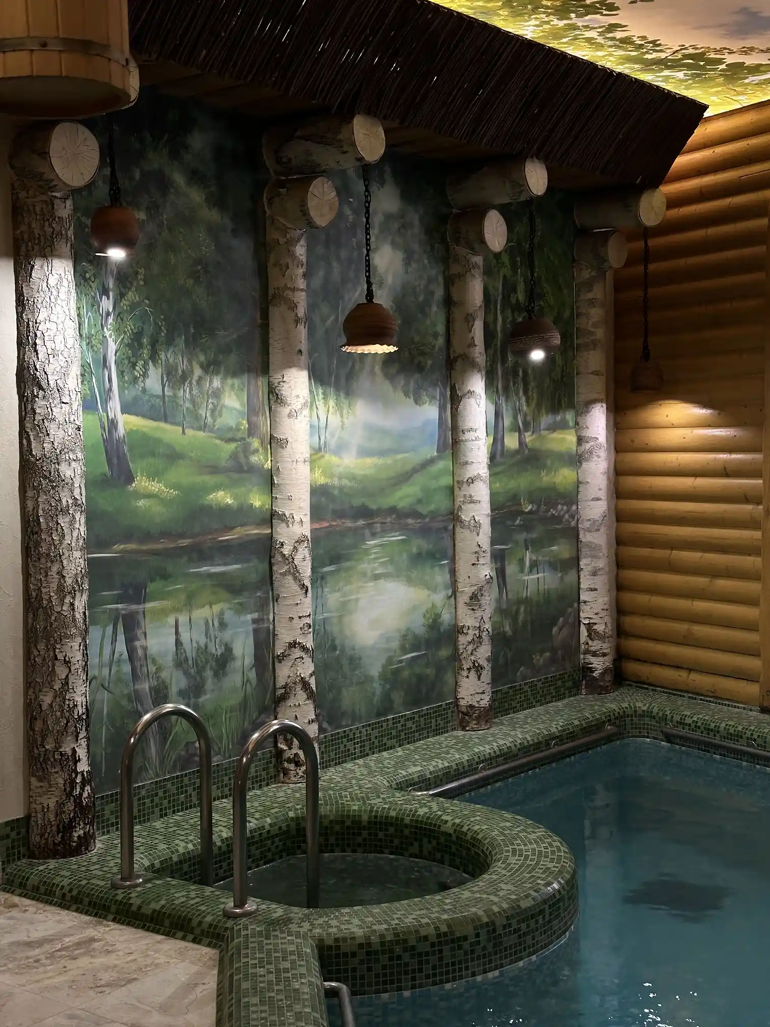 Парная на дровах и русская печка в комнате отдыха погружают в атмосферу деревенского дома. Тёплый бассейн и купель с прохладной водой дарят бодрость и свежесть, а просторная комната отдыха превращает визит в праздник для больших компаний или семей с детьми
